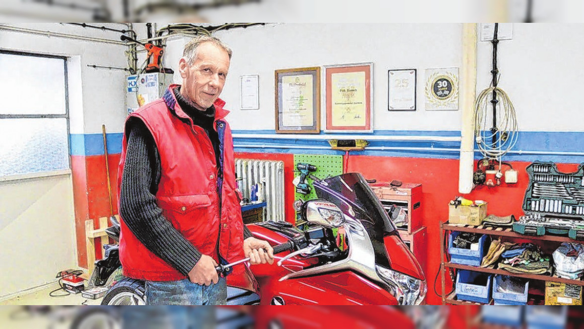 Firmeninhaber Dirk Stannek schraubt hier selbst. Seine Angestellte, Kfz-Mechatronikerin Katja Erhardt, bedient am Verkaufstresen. Das Telefon klingelt. Seit 40 Jahren gehört die Zweirad-Servicewerkstatt zur festen Größe im Bernauer Handelsleben und darüber hinaus.