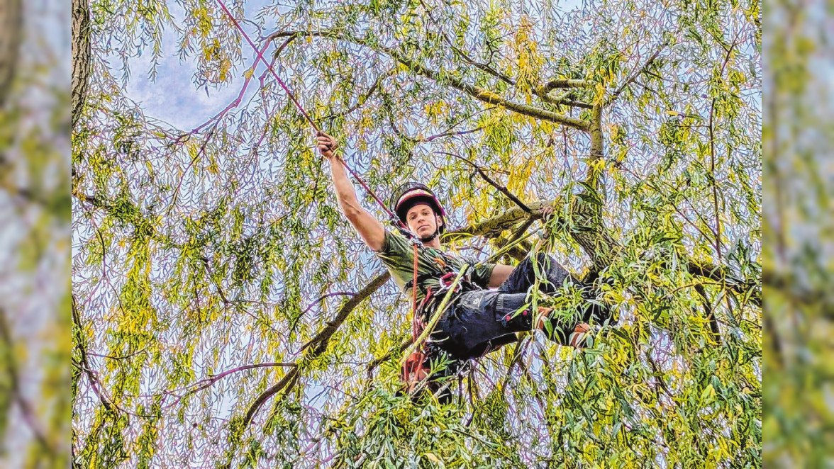 Wo andere aufhören, klettert er erst los. Zehn Meter über dem Boden, das Seil fest im Griff, der Blick nach oben - hier fühlt sich Kevin Kraft am wohlsten. Seit September 2022 führt er seine eigene Firma „Baumfällung und Pflege Kevin Kraft“.