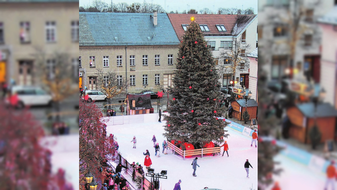Um die Tanne herum können ab sofort die Bernauerinnen und Bernauer bis zum 14. Dezember ihre Runden auf der Eisfläche drehen. Die Eisbahn ist das Herzstück des Weihnachtszaubers in Bernau. Auf 450 Quadratmetern kann nun täglich von 14 bis 20 Uhr, freitags und samstags bis 21 Uhr Schlittschuh gelaufen werden. „Wir sind stolz auf unsere Echteisbahn mitten auf dem Marktplatz in historischer Kulisse. Dieses Vergnügen, das vor allem bei Kindern und Jugendlichen beliebt ist, können wir uns als Stadt Dank der Unterstützung vieler Sponsoren leisten. Allen voran die Stadtwerke Bernau und die WoBau Bernau ermöglichen das weihnachtliche Highlight“, so Bürgermeister André Stahl.