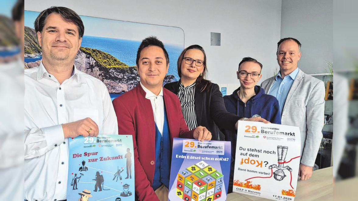 Unter der Überschrift „Dein Rätsel schon gelöst?“ stehen Vertreter der Firmen und Institutionen am 17. Januar 2026 im Erdgeschoss und im ersten Obergeschoss des Oberstufenzentrum II Barnim in der Alexander von Humboldtstraße 40 für Gespräche und Bewerbungen bereit. (siehe Ausstellerliste).