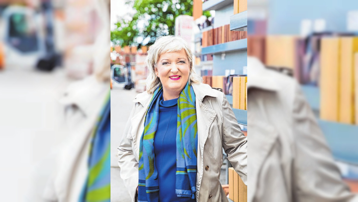 Zur ersten Wahl zählt HobA bei Renovierungen und Anbauten auf historischer Bausubstanz, verrät Geschäftsführerin Petra Hoyer vor einem Regal mit Musterziegeln.