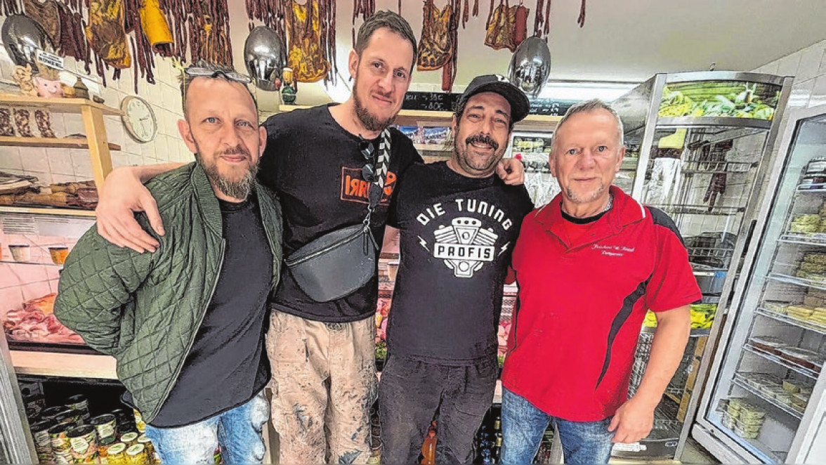Und dann ging's an den Kartoffelsalat, den die drei Jungs sich wahrlich wie Gourmets auf der Zunge zergehen ließen. Von „schöner Säure“ war ebenso die Rede wie von lobenden Worten von „großartig“ bis „meisterhaft“. Doch mit dem einmaligen Genuss wollten es die Jungs nicht bewenden lassen. Sie starteten eine Instagram-Challenge: Ihr Video mit dem Besuch in Lichterfelde musste 200.000 Views erreichen, dann hatte Wernfried Rünzel zugesagt, sein Rezept zu verraten. Damit hat der Fleischermeister die Latte hoch, aber nicht zu hoch gelegt, glaubt das Trio, das im Fernsehen alten Autos zu mehr Leistung und einer besseren Optik verhilft. Die drei Jungs haben Hoffnung, den „weltberühmten“ Kartoffelsalat aus Lichterfelde schon bald selbst machen zu können. Was es dazu braucht: viele Neugierige, die das Instagram-Profil (@tuningprofis) aufrufen. Übrigens haben die drei Jungs in der Region nicht nur gegessen. Eingefleischte Fans wissen längst, dass sie in Altenhof bei der Gestaltung einer Bikerbar helfen. Im Sommer soll diese auch dank ihrer künstlerischen Gestaltung eröffnen und dann viele Einheimische und Gäste anlocken.