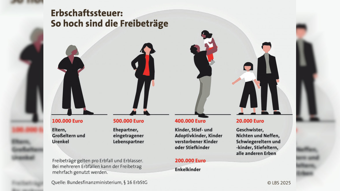 Wer sein Vermögen zu Lebzeiten weitergeben möchte, kann sich für eine Schenkung entscheiden. Dabei lassen sich die geltenden Freibeträge alle zehn Jahre erneut nutzen –aktuell 500.000 Euro für Ehepartnerinnen und -partner und 400.000 Euro pro Kind. Bei höheren Beträgen fallen bei Kindern Steuersätze von bis zu 30 Prozent an, bei entfernteren Verwandten und Freunden sogar Sätze bis zu 50 Prozent. Englert: „Eine frühzeitige Einbindung eines Steuerberaters ist daher unverzichtbar – vor allem, wenn größere Vermögen oder Immobilienwerte im Spiel sind.“ Wer schenkt, sollte zudem darauf achten, sich selbst nicht zu benachteiligen. Wohnrechte oder Nießbrauch stellen sicher, die Immobilie und eventuelle Mieteinnahmen weiter nutzen zu können, auch wenn das Eigentum formal bereits übertragen wurde.