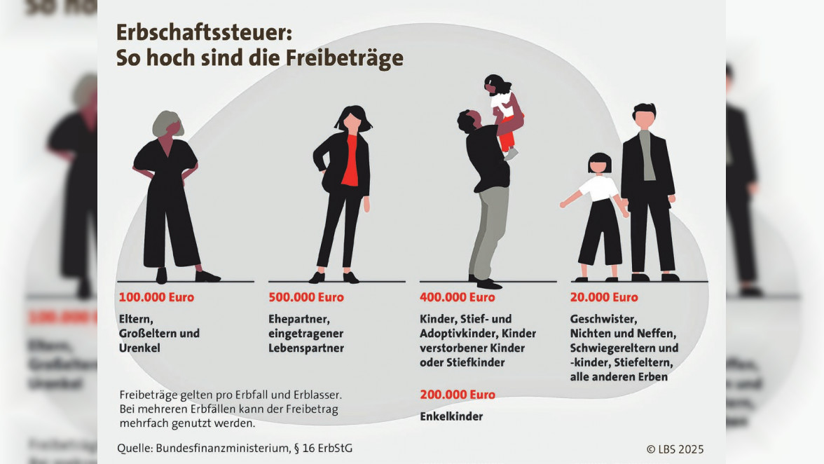Wer sein Vermögen zu Lebzeiten weitergeben möchte, kann sich für eine Schenkung entscheiden. Dabei lassen sich die geltenden Freibeträge alle zehn Jahre erneut nutzen: aktuell 500.000 Euro für Ehepartnerinnen und -partner und 400.000 Euro pro Kind. Bei höheren Beträgen fallen bei Kindern Steuersätze von bis zu 30 Prozent an, bei entfernteren Verwandten und Freunden sogar Sätze bis zu 50 Prozent. Englert: „Eine frühzeitige Einbindung eines Steuerberaters ist daher unverzichtbar – vor allem, wenn größere Vermögen oder Immobilienwerte im Spiel sind.“ Wer schenkt, sollte zudem darauf achten, sich selbst nicht zu benachteiligen. Wohnrechte oder Nießbrauch stellen sicher, die Immobilie und eventuelle Mieteinnahmen weiter nutzen zu können, auch wenn das Eigentum formal bereits übertragen wurde.