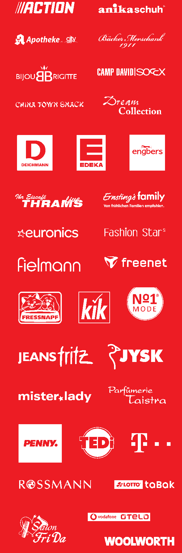 Mit dabei sind in diesem Jahr die Stores Dream Collection, Fashion Stars, Mode Express, Jeans Fritz, Camp David Soccx sowie Ernsting's family.