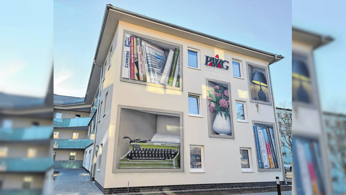 Das städtische Unternehmen befindet sich aktuell in seinem 35. Jahr. Sein jüngster Neubau bietet wie die anderen im „Dichtereck“ barrierearme Wohneinheiten, die mit Fernwärme geheizt werden, Balkone, Aufzug, moderne Bäder etc. allerdings keine Keller. Aus Kostengründen hat die PWG auf Unterkellerung verzichtet und im Erdgeschoss Abstellräume für jede Mietpartei geschaffen.
