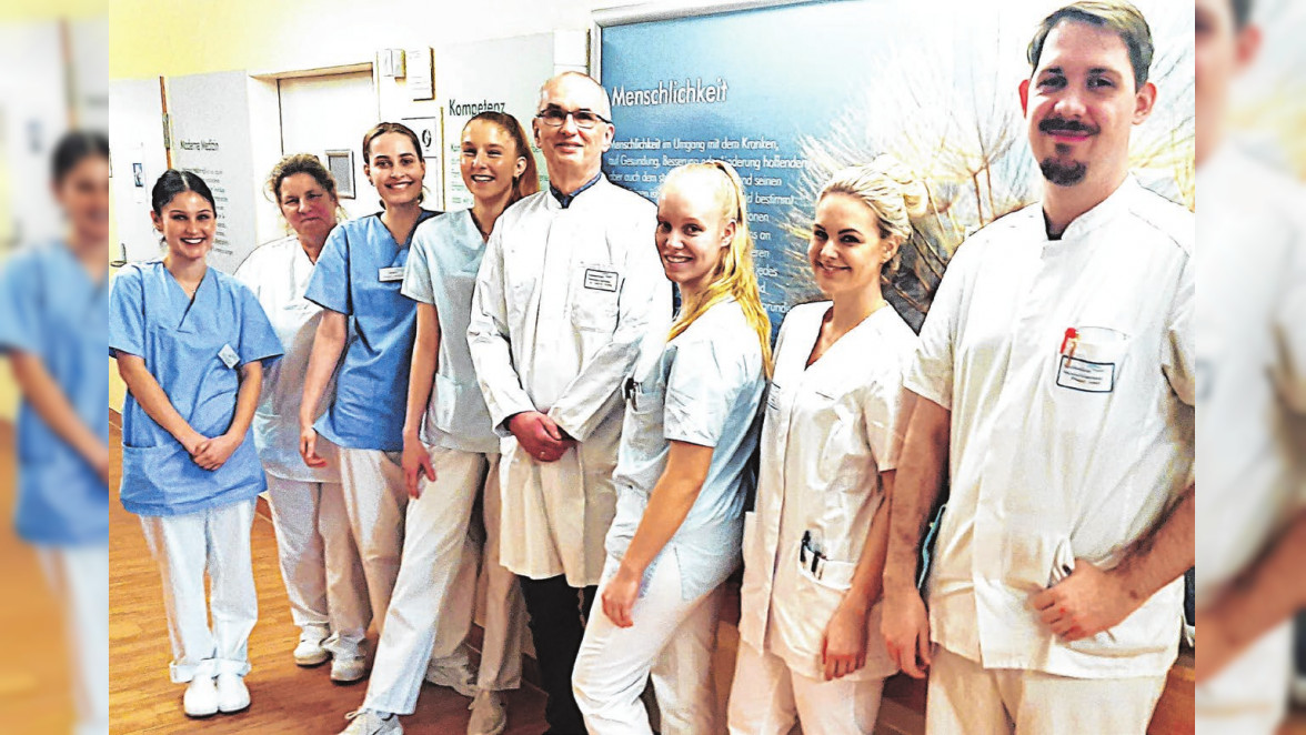 Acht junge Auszubildende im Alter von 18 bis 22 Jahren waren über drei Wochen im Echtzeiteinsatz auf Station 7 der Unfallchirurgie, deren Chefarzt Dr. med. Steffen König ist. Sie haben hier alles gemacht, was im Stationsalltag so anfällt“, lobt Schwester Mandy Harz, die gemeinsam mit Pfleger Leon Beutnagel die Auszubildenden betreute.