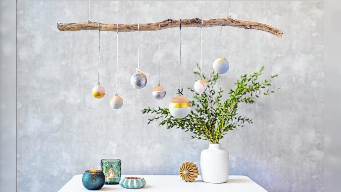 Auch deswegen dekorieren viele ihre Wohnräume festlich. Dabei geht der Trend deutlich in Richtung natürlicher Materialien. Statt glänzender Plastikkugeln aus Fernost stehen eher schlichte und dabei edle Dekorationen aus Holz im Fokus. Da Beste daran: Festliche Holzkugeln, die silbrig oder golden schimmern, lassen sich mit wenig Aufwand selbst herstellen. Dafür wird nicht viel benötigt: Holzkugeln in verschiedenen Größen (4-6 cm Durchmesser), ein kleiner Handbohrer, kleine Ösenhaken, Pinsel, dünnes Kreppband (ca. 1 cm breit) und Bänder zum Aufhängen.