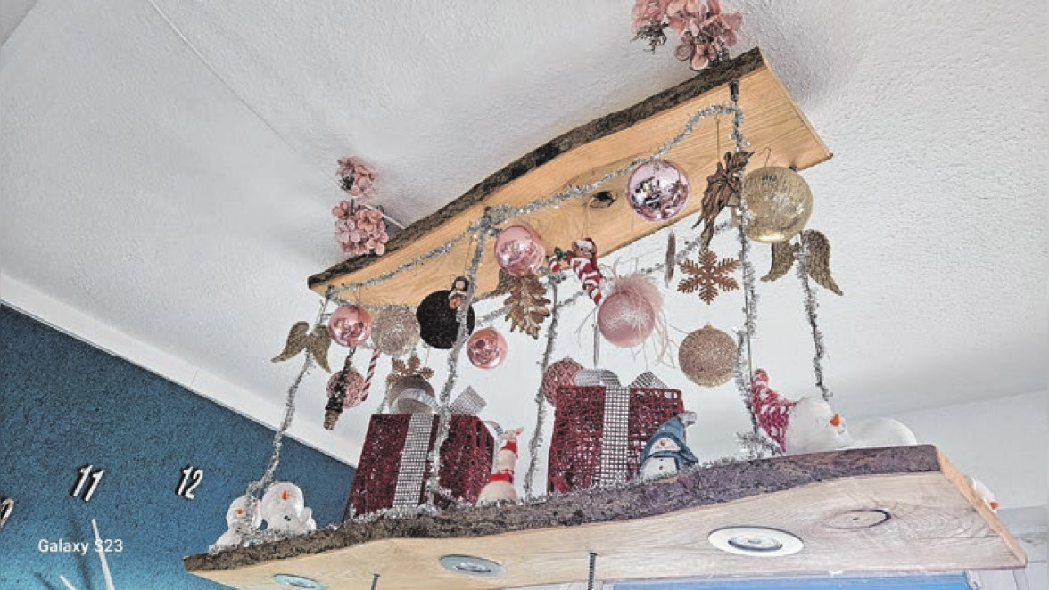 Fotoaktion „Weniger kann jeder“, so lautet das Motto von Vivien Junge aus Rüdersdorf. Sie freut sich jedes Jahr, die von ihrem Mann selbstgebaute Lampe über dem Esstisch zu schmücken. Das Paar und die vier Kinder sind bekennende Fans der amerikanischen Weihnachtsbräuche, so kommt bei ihnen der Weihnachtsmann auch erst in der Nacht vom 24. auf den 25. Dezember. Das sei für die Familie eine entspannte Lösung, schon allein, weil der Gänsebraten-Stress wegfalle, wie die Mutter schreibt.