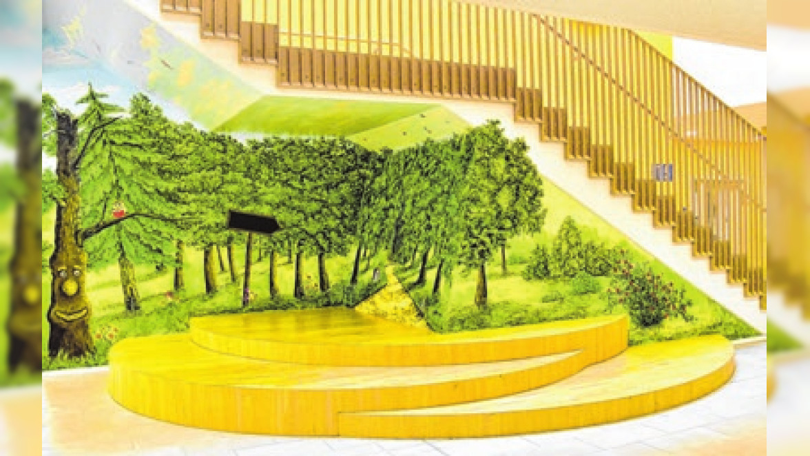 Entstanden ist das Bild, das kürzlich offiziell vorgestellt wurde, als Gemeinschaftsprojekt, an dem viele beteiligt waren. Maßgeblich geprägt wurde das Wandbild von der Malerin Martina Weiher, die in 80 Stunden detailreicher Arbeit eine lebendige Szenerie schuf. Der sogenannte Lesewald greift die Ideen der Bibliothekskinder auf, die zuvor eigene Skizzen mit ihren Lieblingsfiguren und Wunschmotiven erstellt hatten. Das neue Wandbild gilt bereits jetzt als Symbol für Kreativität, Gemeinschaft und gelebte Lesekultur, heißt es in einer Schulmitteilung. Die Schulkinder können nun in entspannter Wald-Atmosphäre lesen.